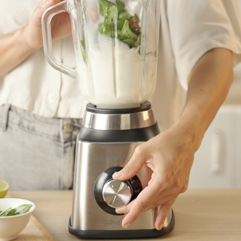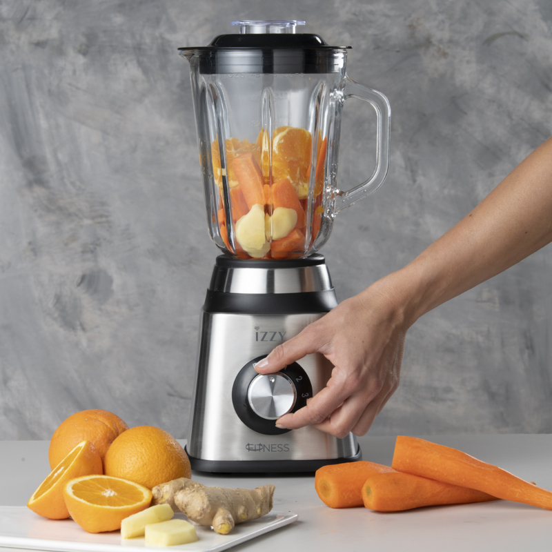 Με το μπλέντερ Fitness IZ-1601 της Izzy, ακόμα και το πιο σκληρό υλικό… δεν μπορεί να αντισταθεί! Αφού έχει ισχύ 1000W, για να τεμαχίζει, να αναμειγνύει, να θρυμματίζει και τα πιο δύσκολα υλικά, ακόμη και τον πάγο. Ενώ, οι 6 ανοξείδωτες λεπίδες του, σου εγγυώνται μεγάλη αντοχή και άψογα αποτελέσματα ανάμειξης. Τέλος, η κανάτα του είναι γυάλινη και έχει μεγάλη χωρητικότητα 1.5Lt, για να μην περιορίζεσαι στις ποσότητες.