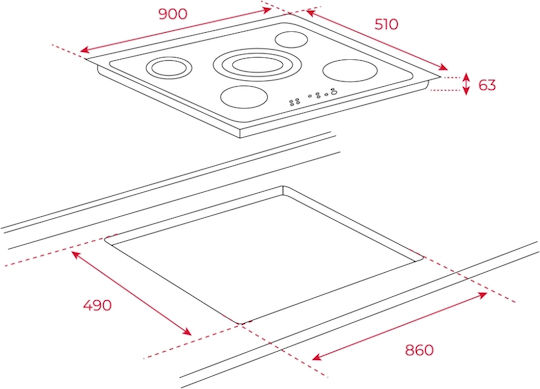 Κεραμικό πλατώ πλάτους 60cm και μέγιστης ισχύς 8.900W με αισθητήρες αφής & μπιζουτέ τελείωμα περιμετρικά.Διαθέτει 5 ζώνες μαγειρέματος High Light και δυνατότητα προγραμματισμού χρόνου μαγειρέματος. Χρησιμοποίησε το ηλεκτρονικό κλείδωμα που απενεργοποιεί τα κουμπιά αφής, για μεγαλύτερη ασφάλεια.