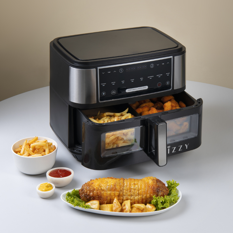 Με την Φριτέζα Αέρος Dual XXL IZ-8225 της Izzy έχεις έτοιμο το φαγητό σε χρόνο ρεκόρ, πετυχαίνεις το τέλειο ψήσιμο και τρως πιο υγιεινά από ποτέ, αφού μαγειρεύεις με ελάχιστο ή καθόλου λάδι! Έχει ισχύ 2600W, χωρητικότητα 10Lt και εύρος θερμοκρασίας 80-200°C, για να μπορείς να ψήνεις ό,τι τραβάει η όρεξή σου. Το καλάθι φυσικά, διαθέτει διαχωριστικό για μέγιστη ευελιξία και αντικολλητική επίστρωση. Επιπλέον, τα μέρη του είναι αποσπώμενα και πλένονται εύκολα στο πλυντήριο πιάτων, για να μη σε προβληματίζει ο καθαρισμός της συσκευής κάθε φορά που ετοιμάζεις φαγητό!