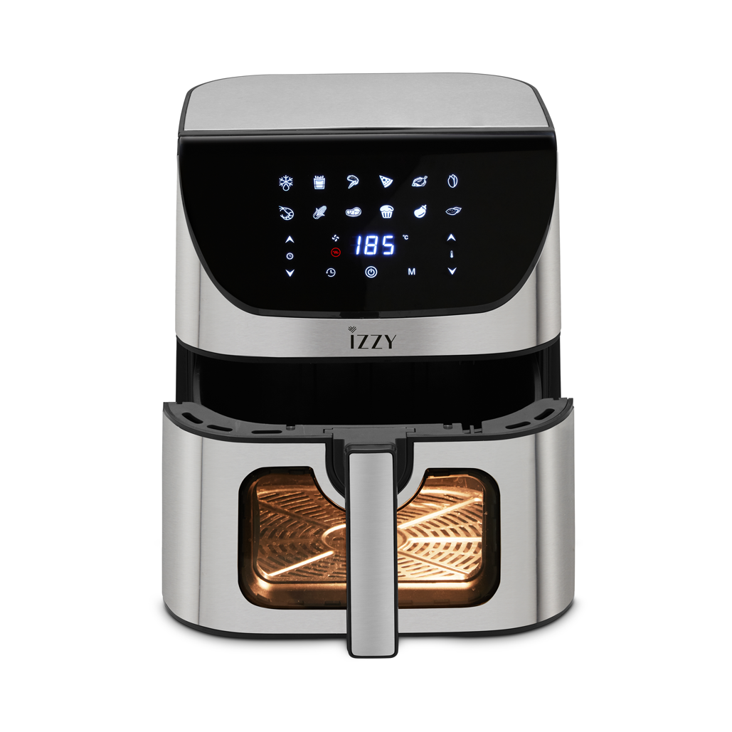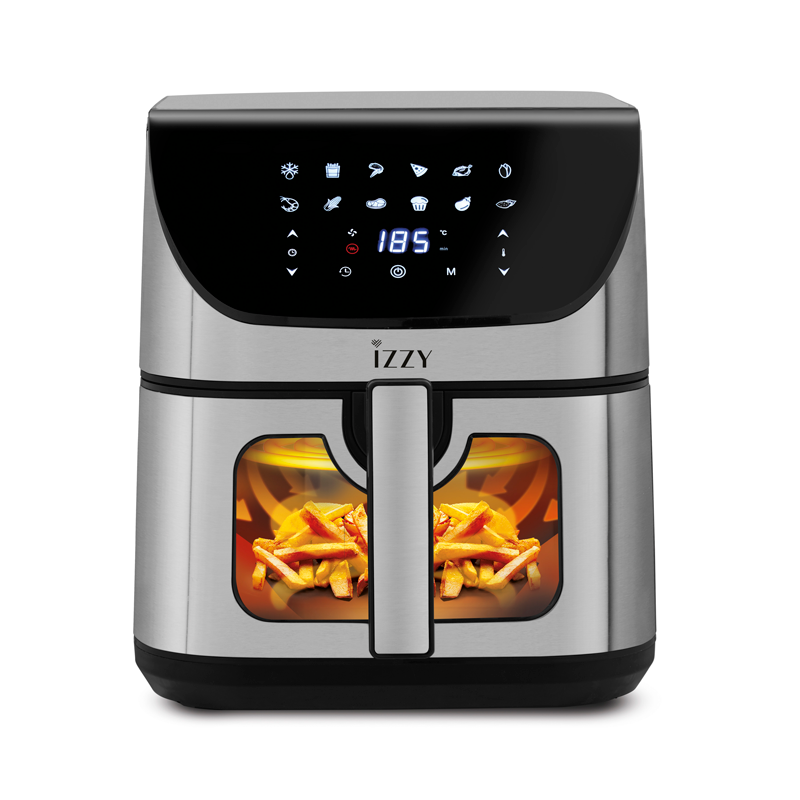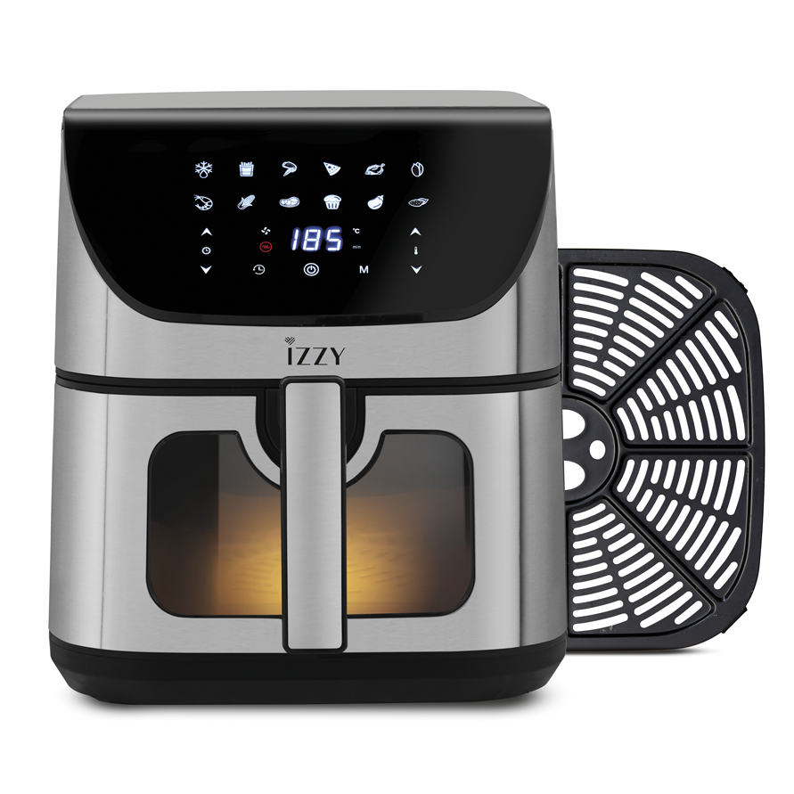 Η φριτέζα αέρος Izzy με XL χωρητικότητα 8,2Lt, ψηφιακή οθόνη αφής και 12 έτοιμα προγράμματα σε βάζει με άνεση και στυλ στον κόσμο του υγιεινού μαγειρέματος – χωρίς λάδι, αλλά με πλούσια γεύση! Ρυθμίζεις θερμοκρασία και χρόνο όπως θες, ρίχνεις ματιές από το ειδικό παράθυρο παρακολούθησης και… το μόνο που μένει είναι να την απολαύσεις. Καθαρίζεται πανεύκολα, είναι 100% ασφαλής χωρίς PFAS, και σου κάνει δώρο ένα βιβλίο συνταγών & 30 αντικολλητικά χαρτιά για να ξεκινήσεις αμέσως. Όλα αυτά με ισχύ 1800W – γιατί όταν μαγειρεύεις, θες να το κάνεις σωστά!