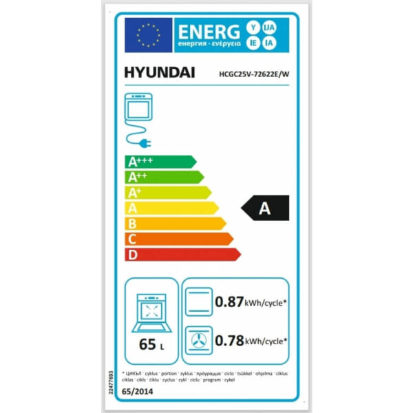 Η κουζίνα της Hyundai HCMU24V-7260ES/W με πολυλειτουργικό φούρνο, χωρητικότητα φούρνου 72Lt, ενεργειακή κλάση Α, 4 εμαγιέ εστίες μαγειρέματος και 5 λειτουργίες ψησίματος ανταποκρίνεται επάξια στις διατροφικές ανάγκες μιας οικογένειας.