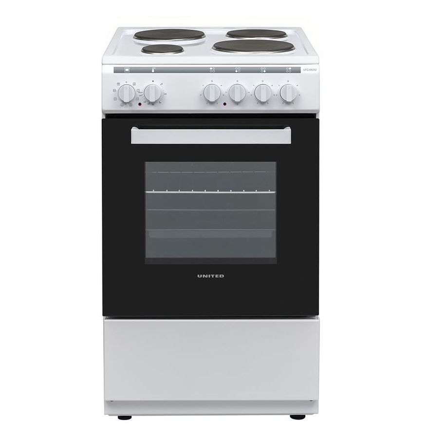 Κουζίνα εμαγιέ United χωρητικότητας 50lt, με 8 λειτουργίες, σταθερούς διακόπτες, αφαιρούμενη πόρτα φούρνου με εντελώς επίπεδη επιφάνεια για εύκολο καθάρισμα και με μεγάλο χώρο αποθήκευσης σκευών.