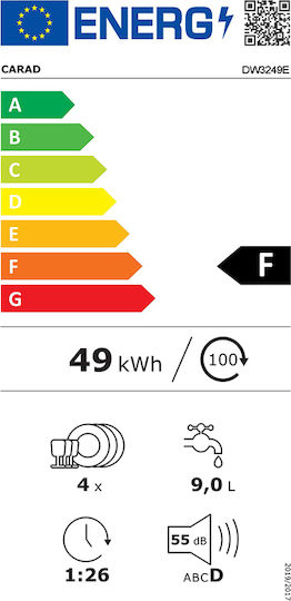 Κατανάλωση Ενέργειας : 49 kwh/100 κύκλους